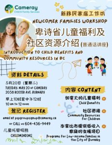 Introduction to Child Benefits and Community Resources in BC (in Mandarin): Tuesday, May 20,