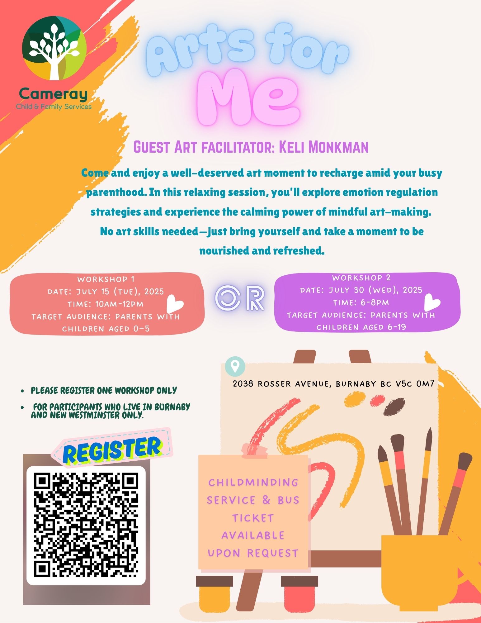 Cameray (Rosser) 2038 Rosser Ave, BurnabyTwo-session group on Wednesdays, July 23 and July 30, 10:00 am to 11:30 am. Join us for a hands-on experience where young children and their caregivers explore, create, and imagine together through open-ended loose parts play. Designed for children aged 3 to 5 years, this interactive parent–child group offers a relaxed, play-based environment filled with…