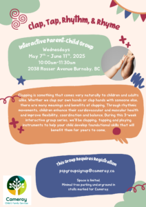 During this 6-week interactive group series, we’ll clap, tap and play instruments along with songs and rhymes.