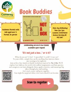What do you see? A box? A spaceship? A castle? A race car? To your child, a simple box can be anything that interests them—just waiting to be explored. Please join us for a fun, hands-on family workshop inspired by Not A Box. We’ll explore how kids see the world with endless imagination, and how parents and caregivers can learn alongside them, spark creativity, and encourage big ideas through play and reading. Let’s read, create, and grow together. You might be surprised what a box (and a book!) can become. Childminding and bus tickets are available upon request.