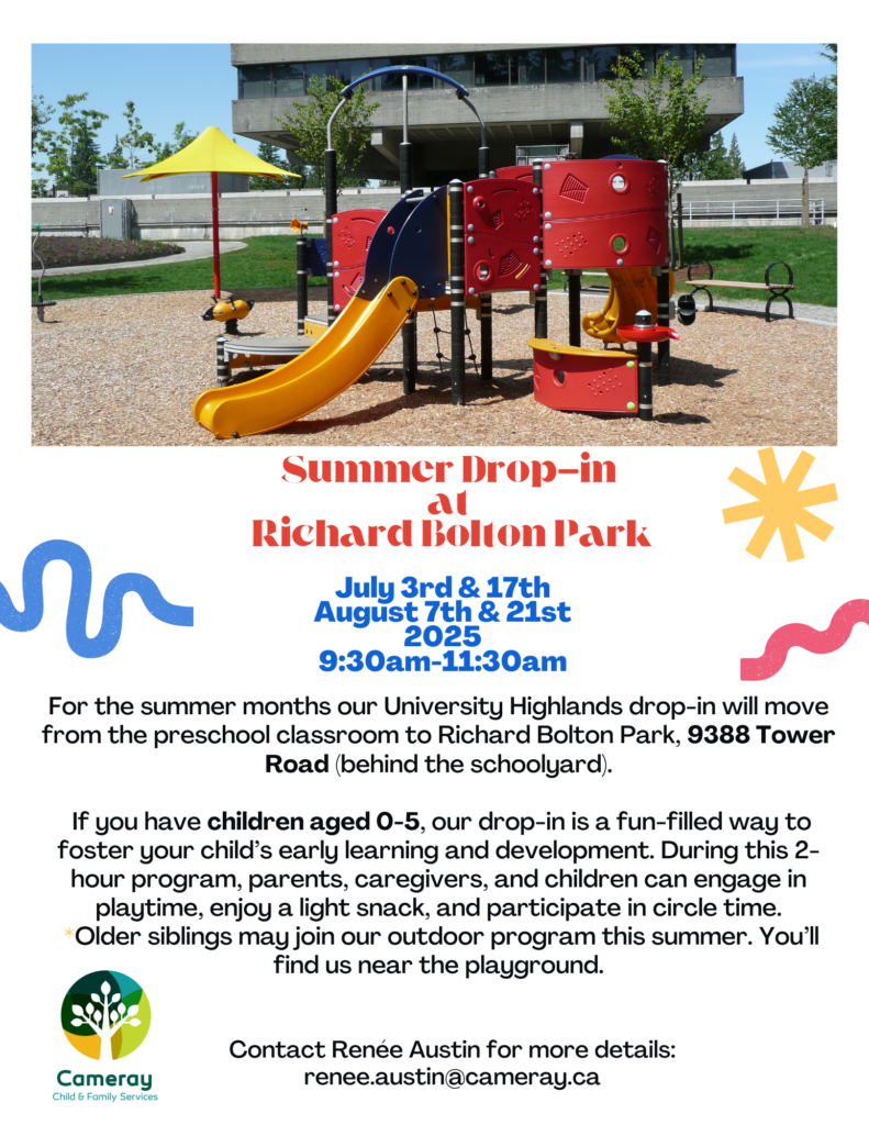 Rosser Infant/Toddler Drop-In: These drop-in groups (9:30 am to 11:30 am and 12:30 pm to 2:30 pm) are for parents and caregivers with children aged 0 to 36 months. During this two-hour program, parents can enjoy play time with their child, meet other families, and discuss any concerns regarding child development and growth, in a safe and