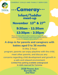 Rosser Infant/Toddler Drop-In: These drop-in groups (9:30 am to 11:30 am and 12:30 pm to 2:30 pm) are for parents and caregivers with children aged 0 to 36 months. During this two-hour program, parents can enjoy play time with their child, meet other families, and discuss any concerns regarding child development and growth, in a safe and relaxed environment. Light snacks are provided.