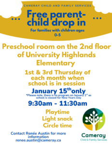 Visit our parent child drop-in program in partnership with University Highlands Elementary and the City of Burnaby.