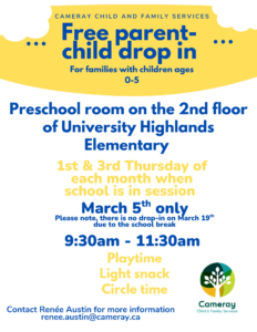 Visit our parent child drop-in program in partnership with University Highlands Elementary and the City of Burnaby.