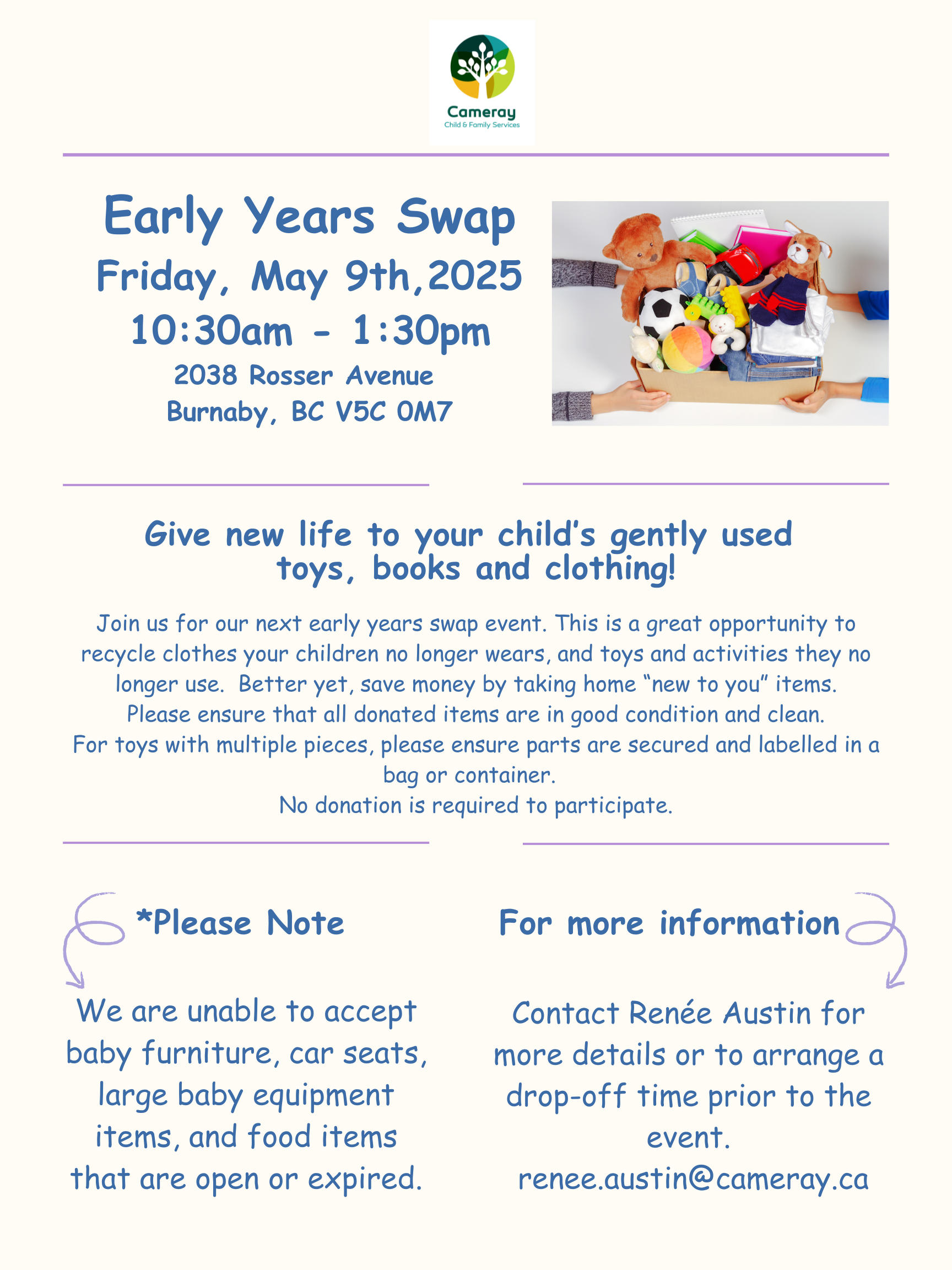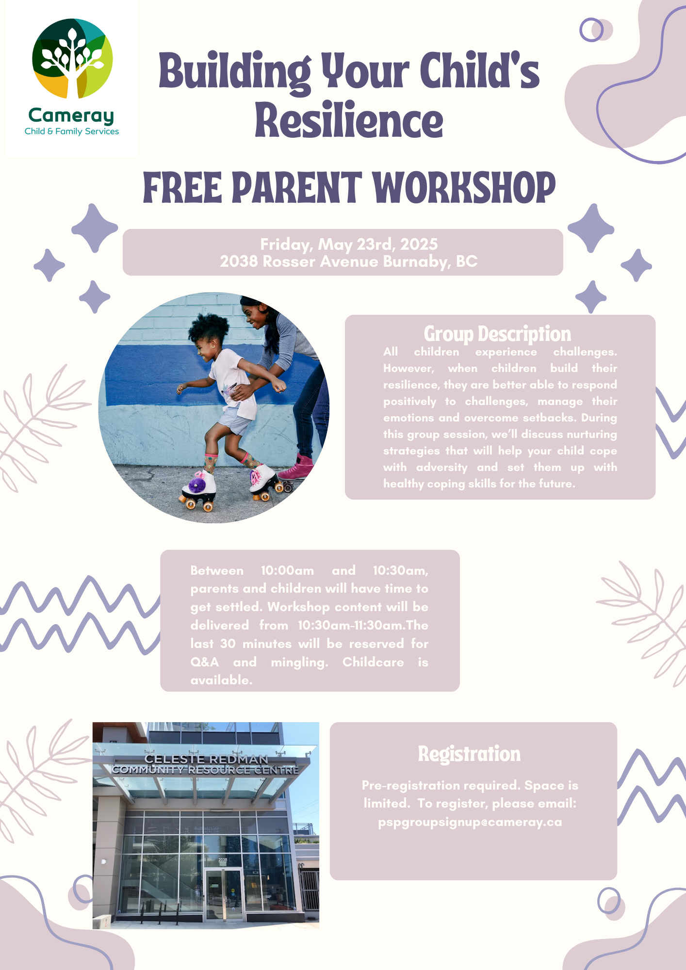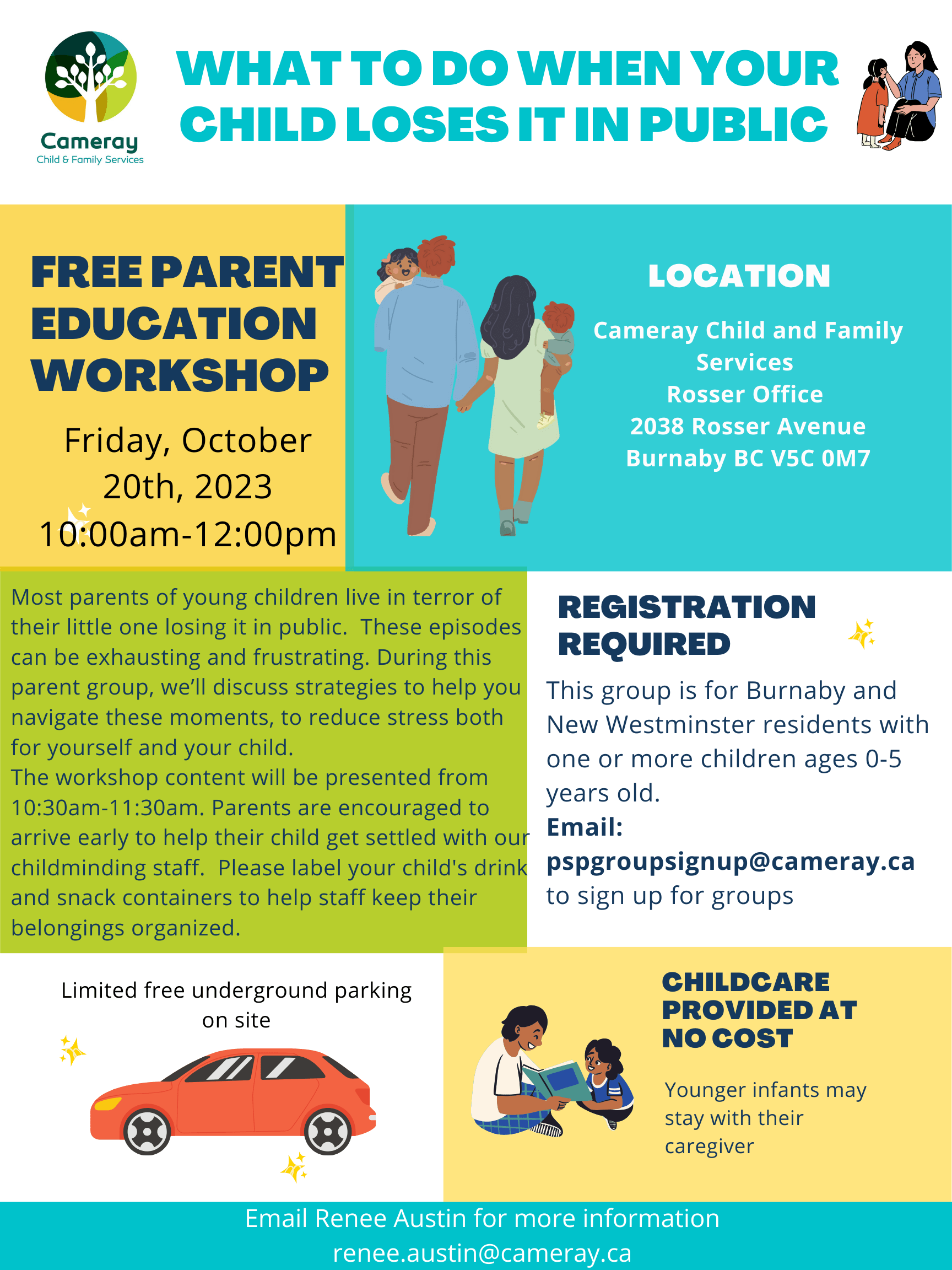 - Free Parenting Consultation on Mondays, December 8th and 15th, 2025 between 9:00 am to 1:00 pm. Click here for more information.